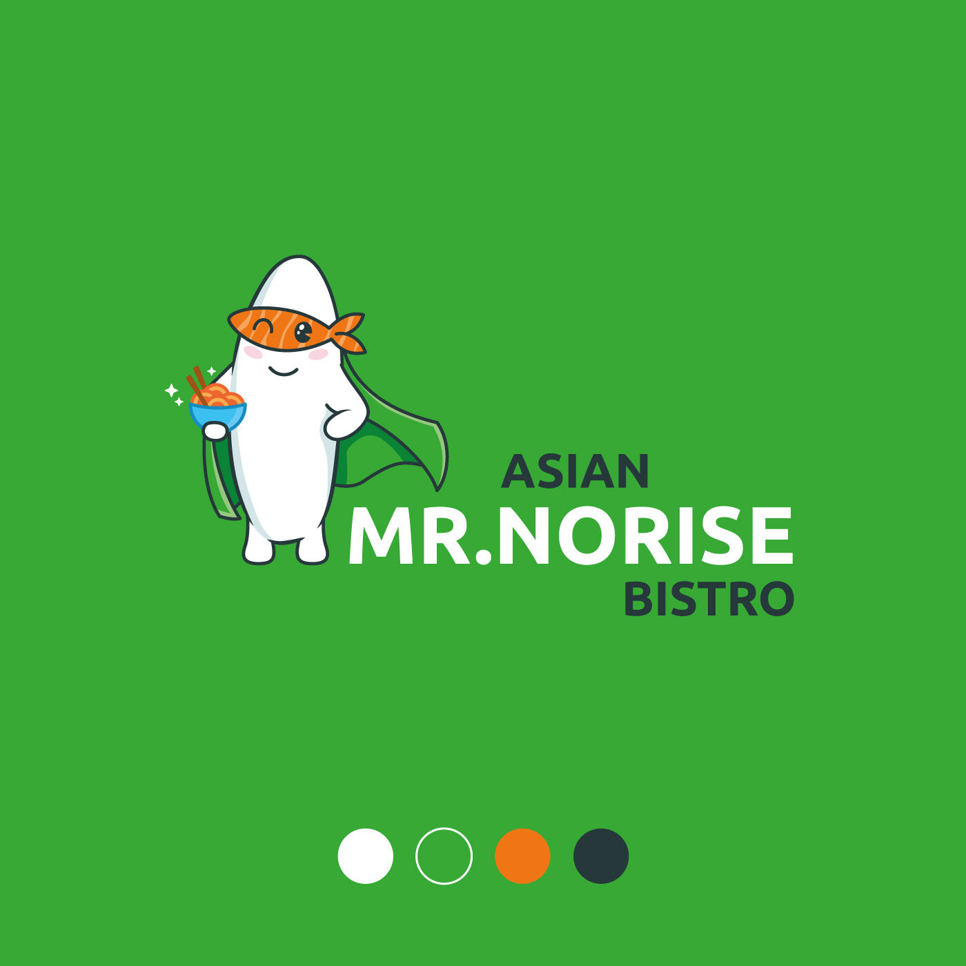 Разработать логотип для азиатского бистро, который передает атмосферу азиатской кухни и подчеркивает дружелюбный, креативный характер заведения. Требовалось создать запоминающийся персонаж-маскот, способный стать частью фирменного стиля, и обеспечить гармоничное сочетание графики и типографики.